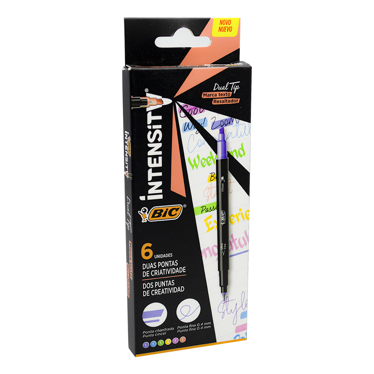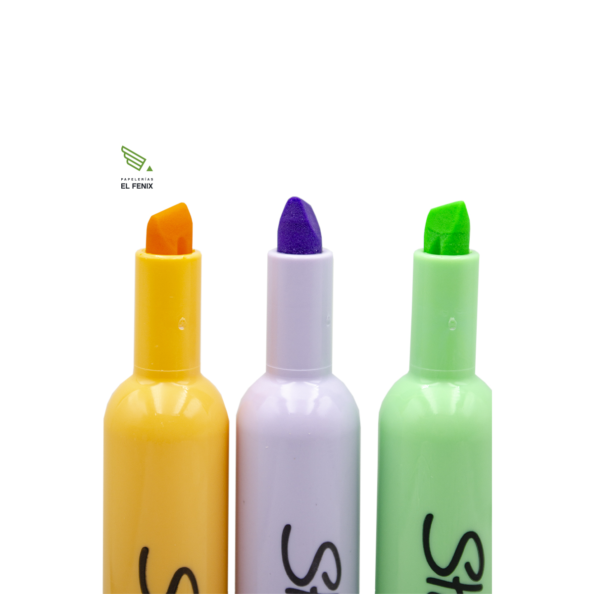 Resaltador con tinta especializada para evitar que la tinta se corra, punta cincel biselada, colores brillantes.