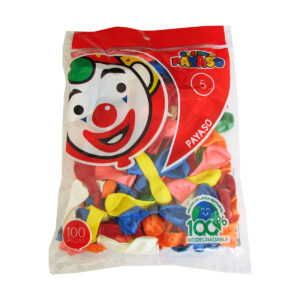 Globo marca payaso, del numero 5, colores surtidos, bolsa con 100 piezas, modelo básico