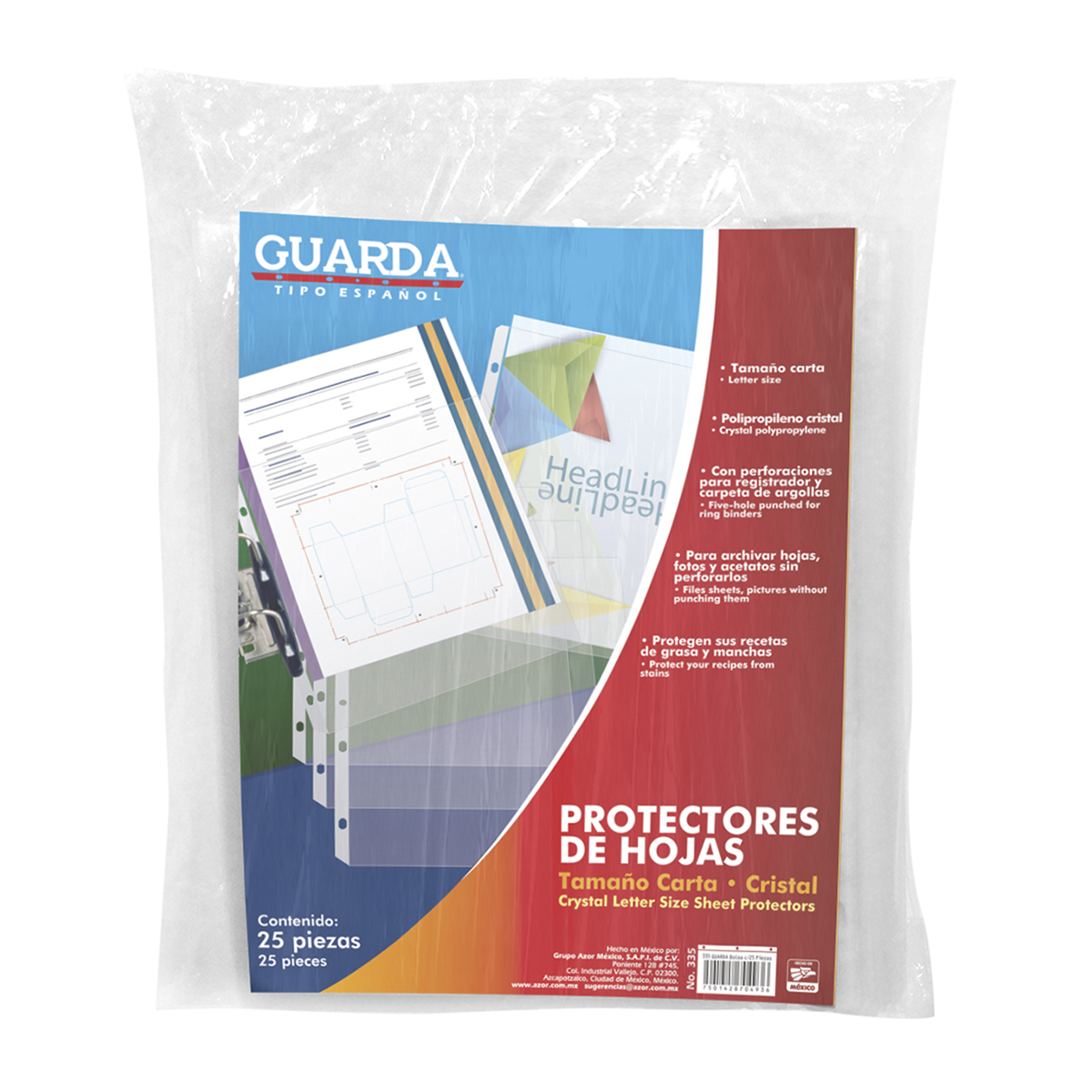 Protectores de hojas tamaño carta perforadas, reciclables, superficie antiadherente, ideales para mantener en buen estado y organizar documentos.
